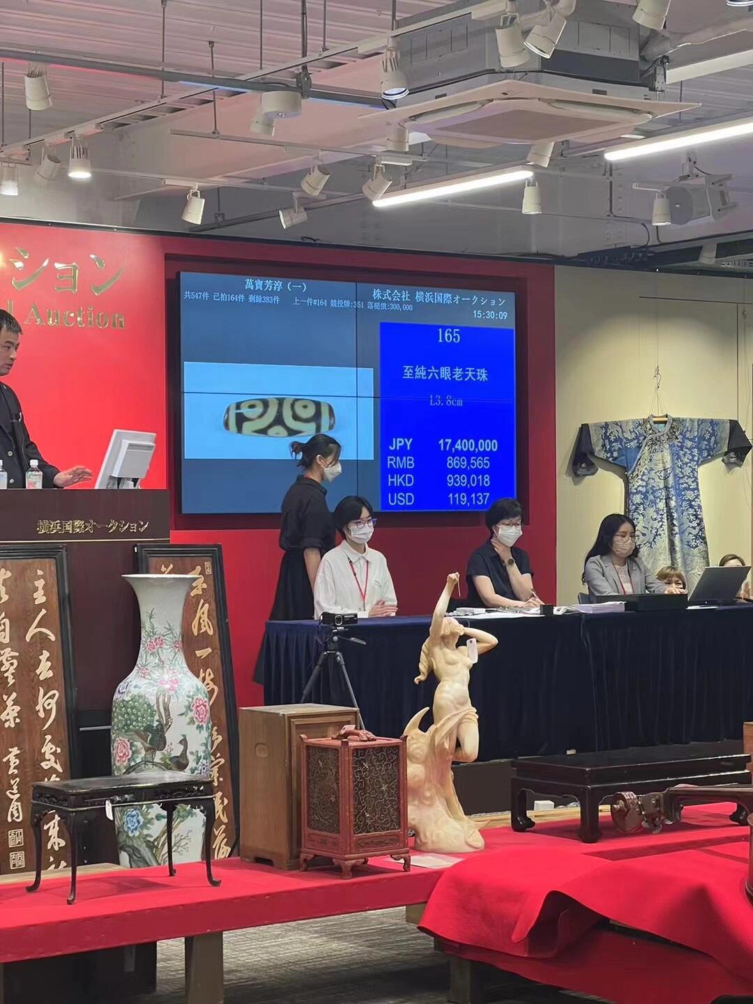 横浜国際オークション 2023 年に石原石天珠を精製するまでに1粒取引されたことがある。 最終的に 17400000 円で成約。